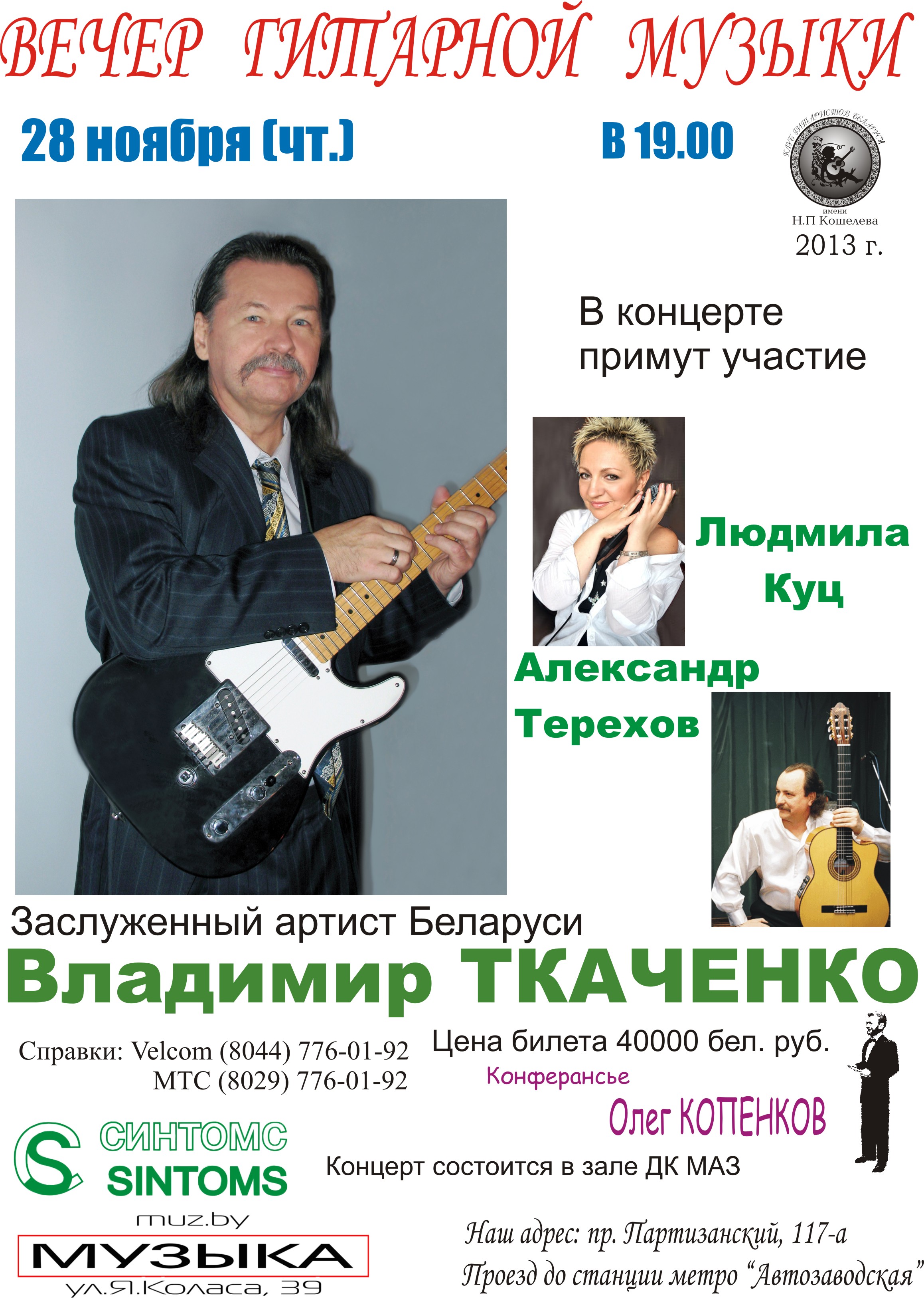26 октября 2011 года в Минском клубе гитаристов в 18.30 состоится концерт Владимира Ткаченко
